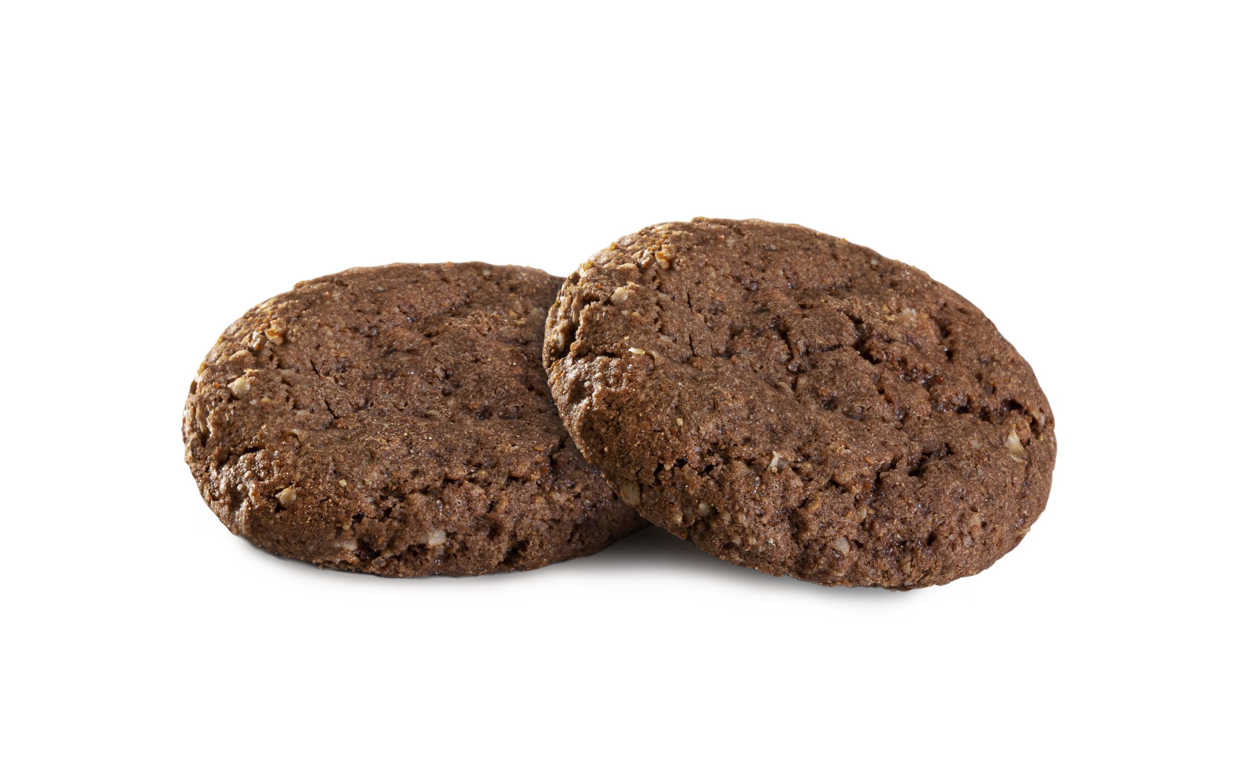 INGREDIENTES: Farinha de trigo 100% integral, aveia integral, óleo de palma, açúcar demerara, gotas de chocolate (vegano e sem lactose), fibra vegetal, cacau, fermento (bicarbonato de sódio), sal marinho e aroma de café.