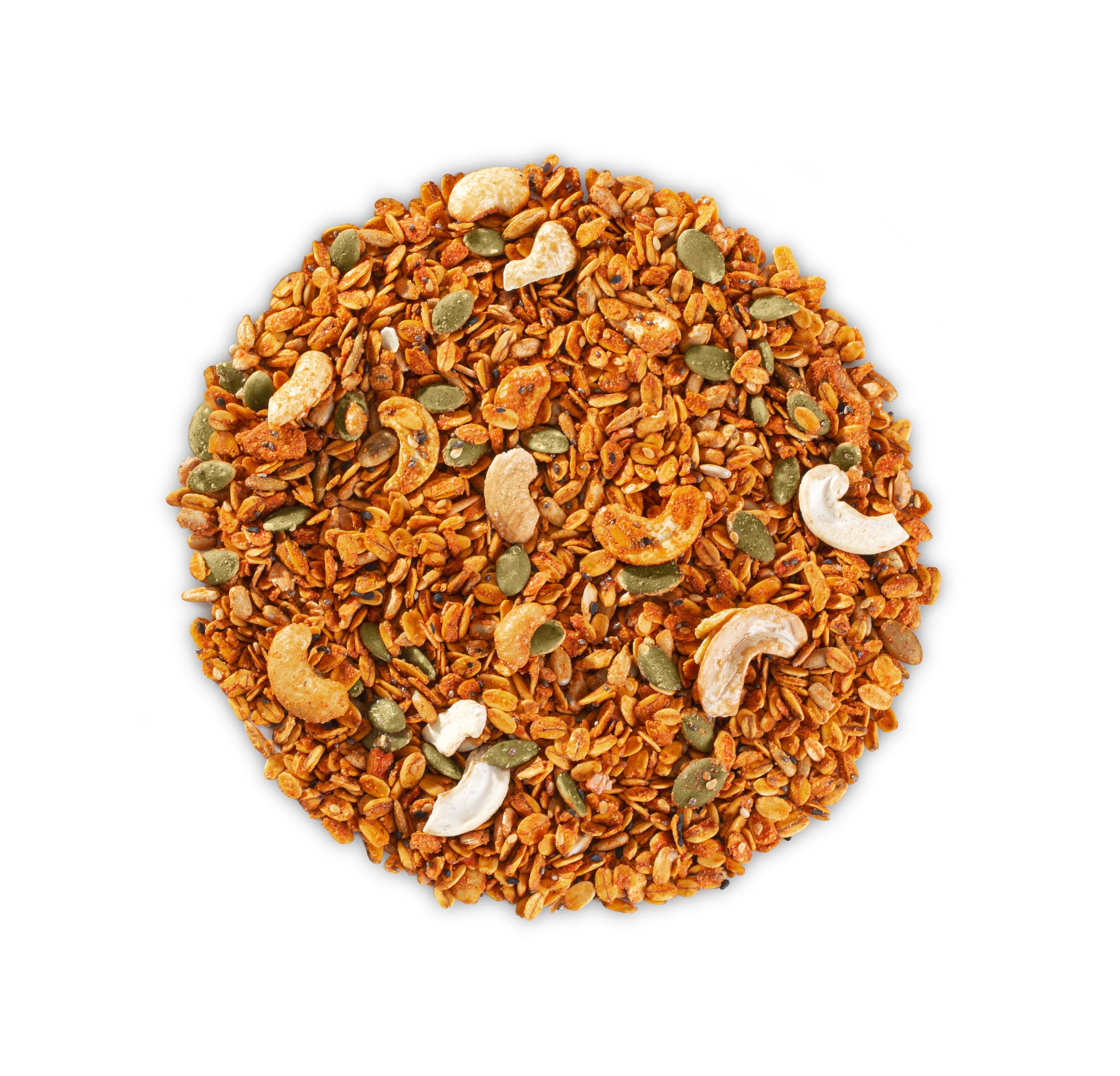*UMA GRANOLA COM INTENSO SABOR PICANTE, RICA EM TEXTURAS E CROCÂNCIA. FEITA COM MUITA PIMENTA TABASCO.